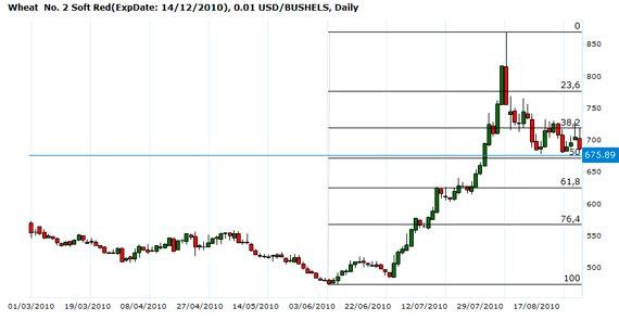 Чикагские агрокотировки закрылись в красном во вторник. Больше всего подешевела пшеница. Однако важный уровень поддержки по ближайшему Декабрю 678.50 центов за бушель так и не был пробит. Цены не выходят за пределы установившегося в последние две недели бокового диапазона. Инвесторы продолжают оценивать последствия глобальных катаклизмов и не спешат к опрометчивым выводам, которые потом могут стоить денег. Поступающие же пока сообщения о покупке обычной 20 тыс. тонн американской пшеницы (не дурум) германскими мукомолами хотя и помогают удерживать рынок от провала, но и не вдохновляют на штурм августовских высот. Австралия, по мнению аналитиков Рабобанка, соберёт в этом году около 22 млн тонн пшеницы и экспортирует примерно 15 млн тонн. Египет тендерит очередную партию. Есть надежда, что в этот раз американцам может повезти. Метеорологи ожидают дожди разной степени интенсивности над полями России, Китая, Аргентины и Австралии, но воздействие на урожаи их будет неоднозначное. Если в России, Австралии и Аргентине они ослабят воздействие засухи, то в Китае из-за переувлажнения и низких температур злаки могут пострадать.