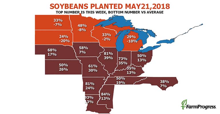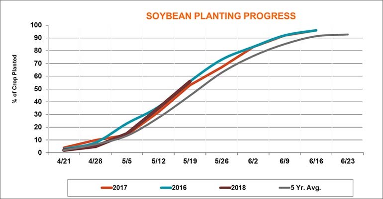 Посевные работы по кукурузе в 2018 году начались довольно поздно, но уже к 20 мая было высажено около 81% всей культуры. Соевые бобы и яровая пшеница также показывают хорошие результаты.