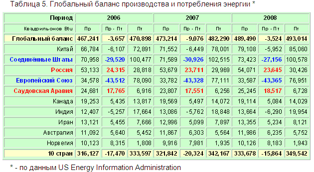 На десятку представленных в таблице фигурантов приходится 68% производства энергии и 71% мирового потребления. Россия и Саудовская Аравия главные “энергетические доноры”, “энергетические реципиенты” и по совместительству производители мировых денег США и ЕС. Очевидно, что человечество упёрлось в “энергетический барьер”, мировой экономике попросту некуда расти и на фоне прироста населения планеты в фундаментальном базисе цивилизации ТЭК + ФИНАНСЫ + АПК зреет системный кризис, который потушить деньгами нереально.