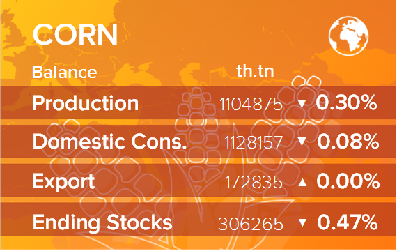 Прогноз мирового производства кукурузы на 2019/20 г. сократился за счет уменьшения урожая для США и Украины. Мировая торговля незначительно изменилась с прошлого месяца. Мировое производство кукурузы для 2018/19 года немного снижено в этом месяце за счет Индии и Парагвая. Мировая торговля повышена благодаря увеличению импорта в Европейский Союз и Иран, которое более чем компенсирует снижение импорта Мексикой. Что касается экспорта, прогноз для Бразилии повышен, что отражает рекордные поставки в августе. Экспорт США сокращен на основе продаж и поставок, наблюдавшихся до начала сентября.