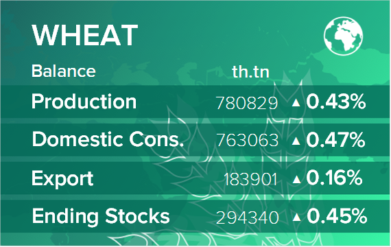 Мировые запасы пшеницы на 2019/20 год повышены на 4,9 млн тонн благодаря увеличению начальных остатков на 1,6 млн тонн и увеличению мирового производства на 3,3 млн тонн. Прогнозируемый объем мировой торговли на 2019/20 год увеличен на 0,8 млн. тонн с увеличением на 1,0 млн. тонн для России и на 0,5 млн. тонн для Украины, что связано с увеличением производства в этих странах. Это частично нивелируется сокращением экспорта ЕС на 0,5 млн. тонн при высокой конкуренции со стороны черноморского региона. Прогнозируемое мировое потребление в 2019/20 году увеличено на 3,6 млн тонн. Поскольку запасы повышены больше, чем потребление, конечные остатки повышены на 1,3 миллиона тонн до рекордных 294,3 миллиона.