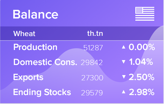 За прошедший месяц министерство сельского хозяйства США (USDA) на 09.04.2019 пересмотрело Баланс пшеницы для США в сезоне 18/19 следующим образом: