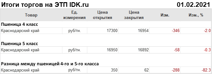 Итоги торгов на ЭТП IDK.ru 1 февраля 2021