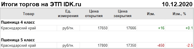 Итоги торгов на ЭТП IDK.ru 10 декабря 2020