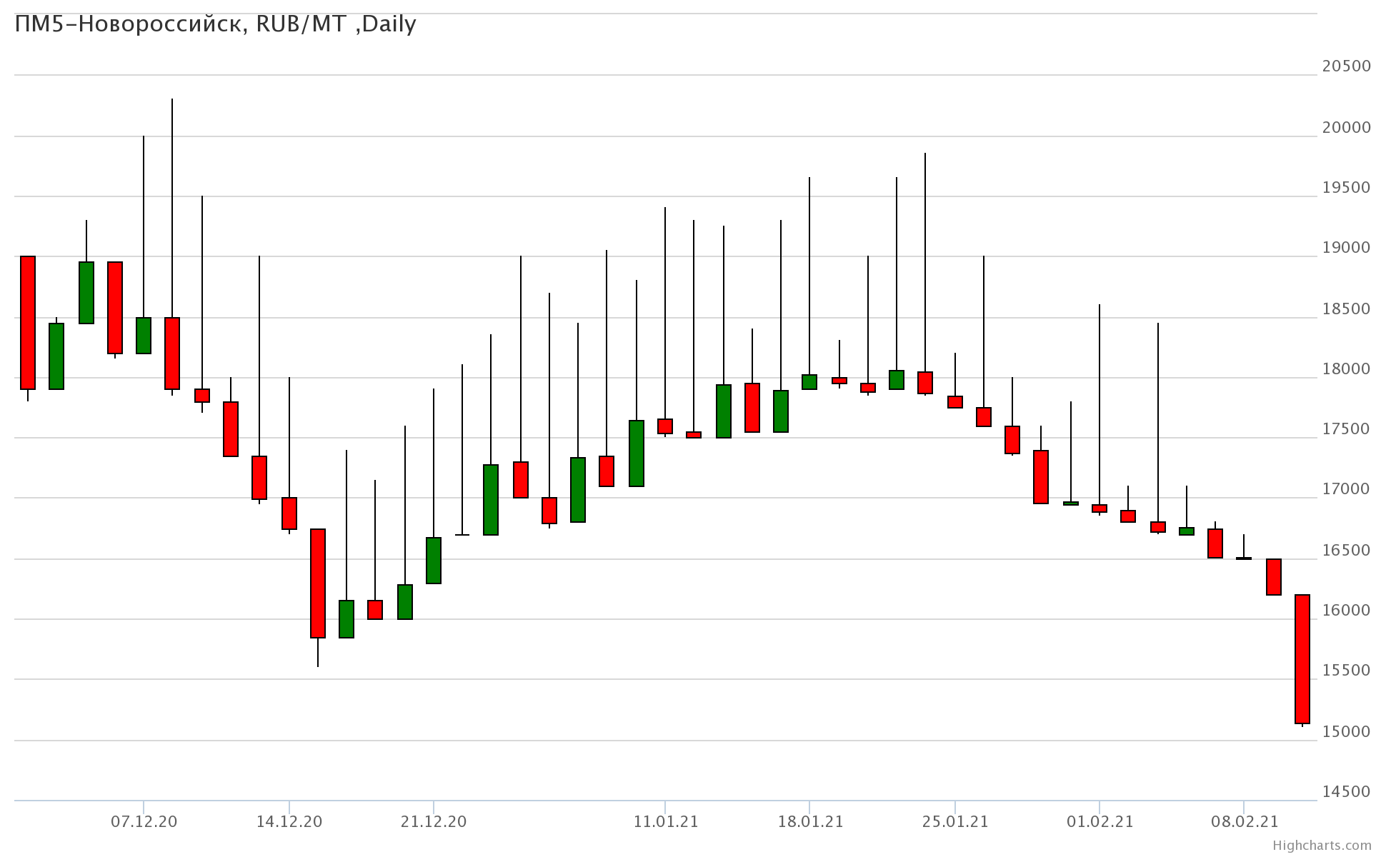 Сегодня в 13:00 Мск, завершились торги на ЭТП IDK.ru по пшенице 5-го класса, базис поставки Краснодарский край. Цены упали на 1058 рублей до 15142 рублей за тонну.
