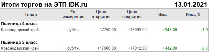 Итоги торгов на ЭТП IDK.ru 13 января 2021