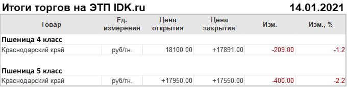 Итоги торгов на ЭТП IDK.ru 14 января 2021