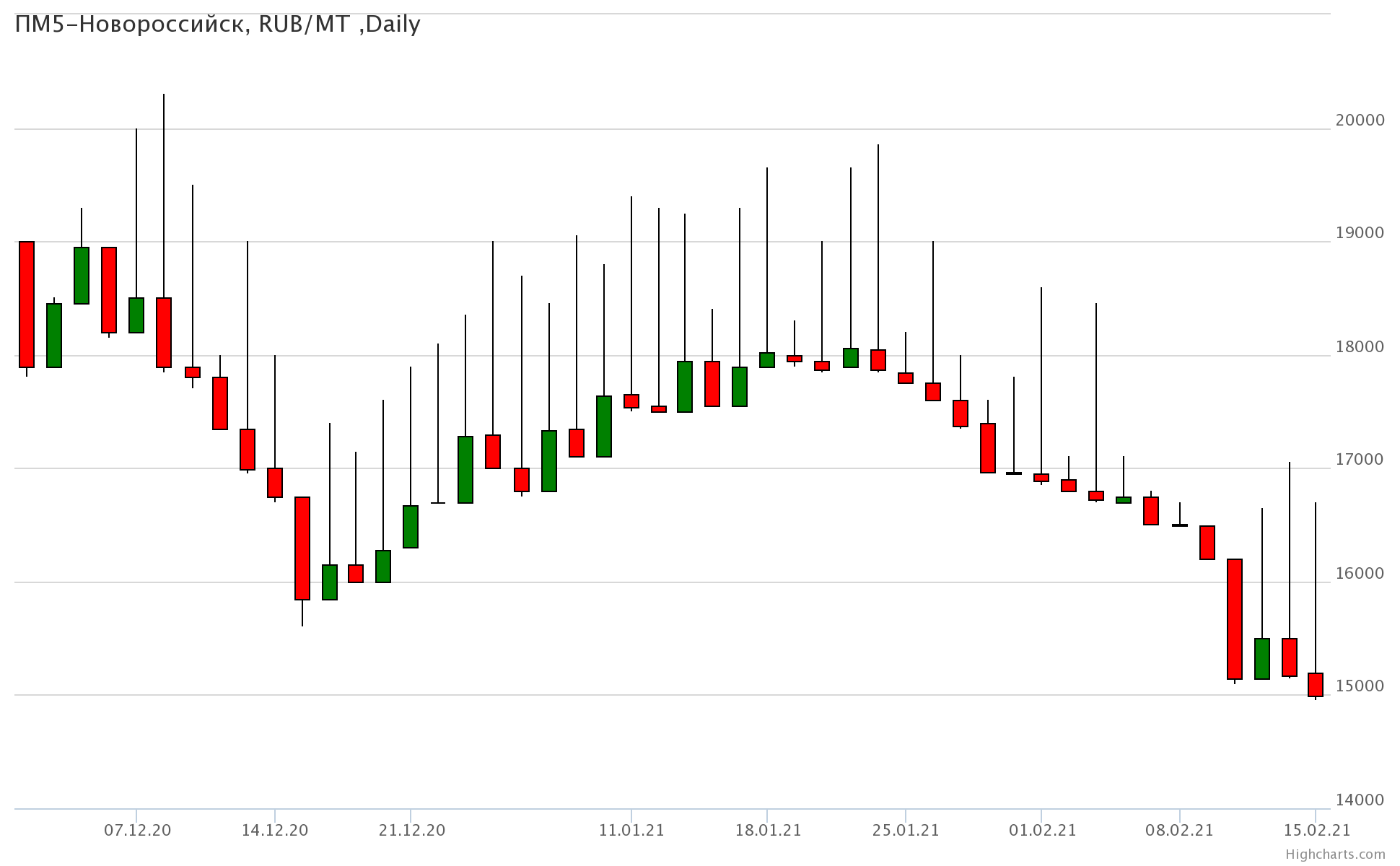 Сегодня в 13:00 Мск, завершились торги на ЭТП IDK.ru по пшенице 5-го класса, базис поставки Краснодарский край. Цены упали на 204 рублей до 14996 рублей за тонну.