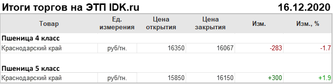 Итоги торгов на ЭТП IDK.ru 16 декабря 2020
