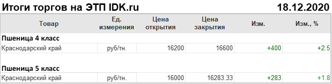 Итоги торгов на ЭТП IDK.ru 18 декабря 2020