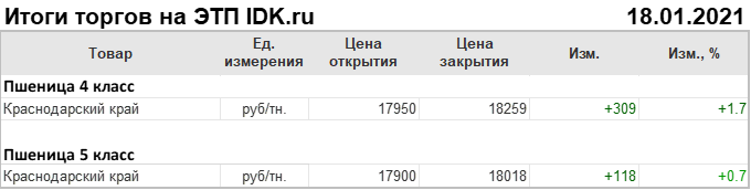 Итоги торгов на ЭТП IDK.ru 18 января 2021