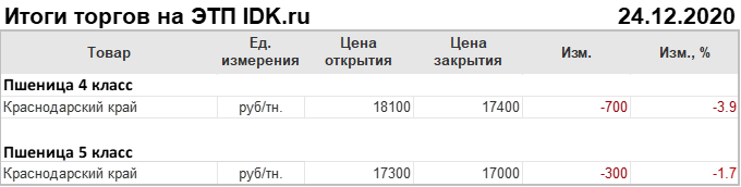 Итоги торгов на ЭТП IDK.ru 24 декабря 2020