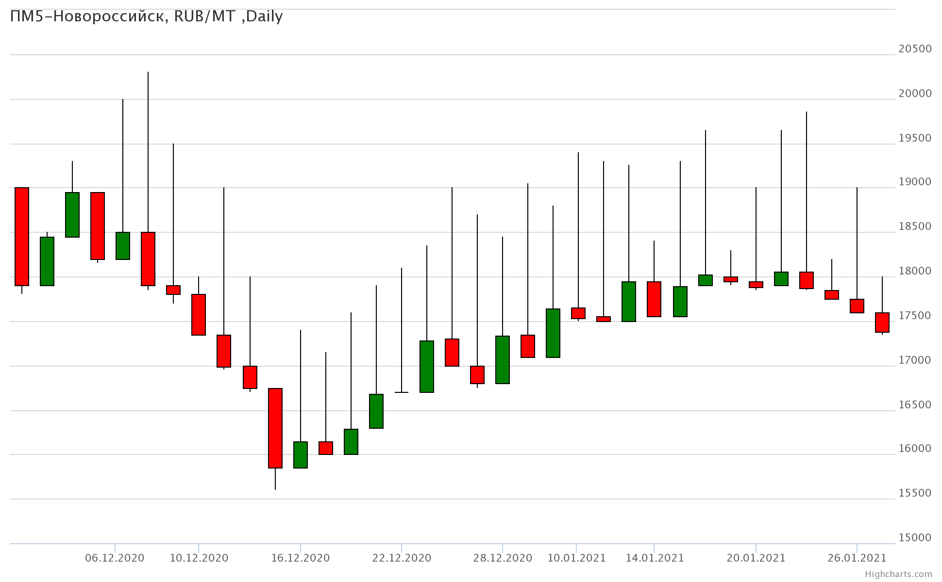 Сегодня в 13:00 Мск, завершились торги на ЭТП IDK.ru по пшенице 5-го класса, базис поставки Краснодарский край. Цены упали на 225 рублей до 17375 рублей за тонну.