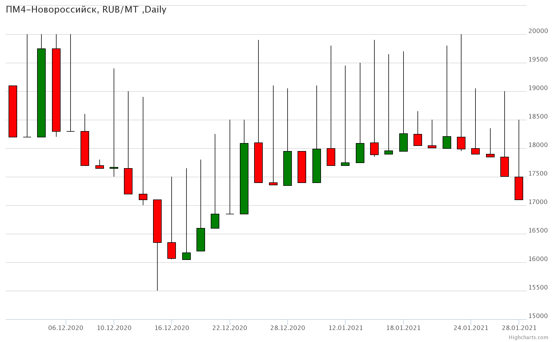 Сегодня в 12:30 Мск, завершились торги на ЭТП IDK.ru по пшенице 4-го класса, базис поставки Краснодарский край. Цены упали на 400 рублей до 17100 рублей за тонну.