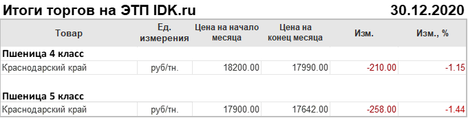 На ЭТП IDK.ru в течение декабря месяца проходили торги пшеницей. Покупателем пшеницы на аукционе выступает ООО «ОЗК Юг».