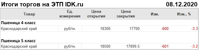 Итоги торгов на ЭТП IDK.ru 8 декабря 2020