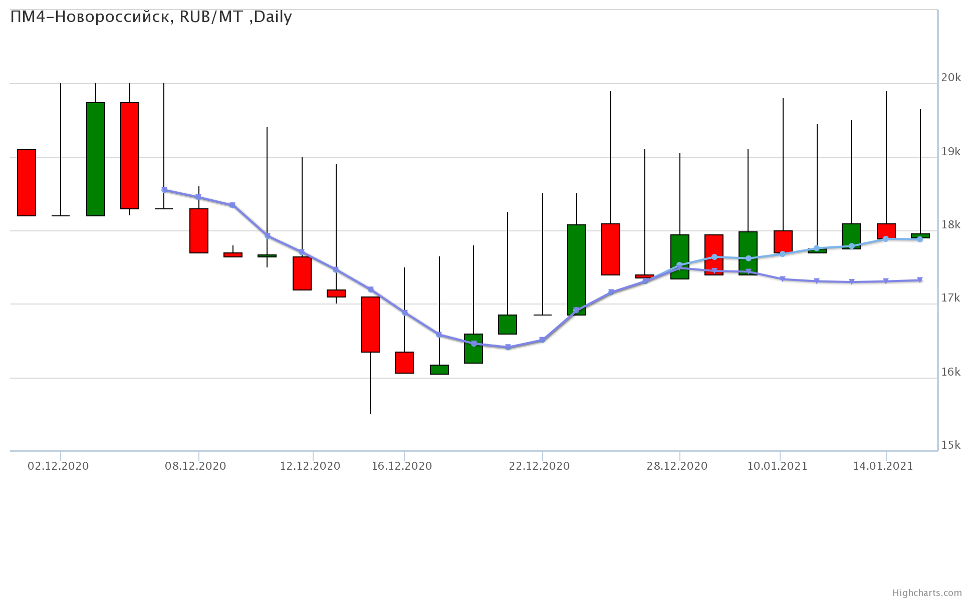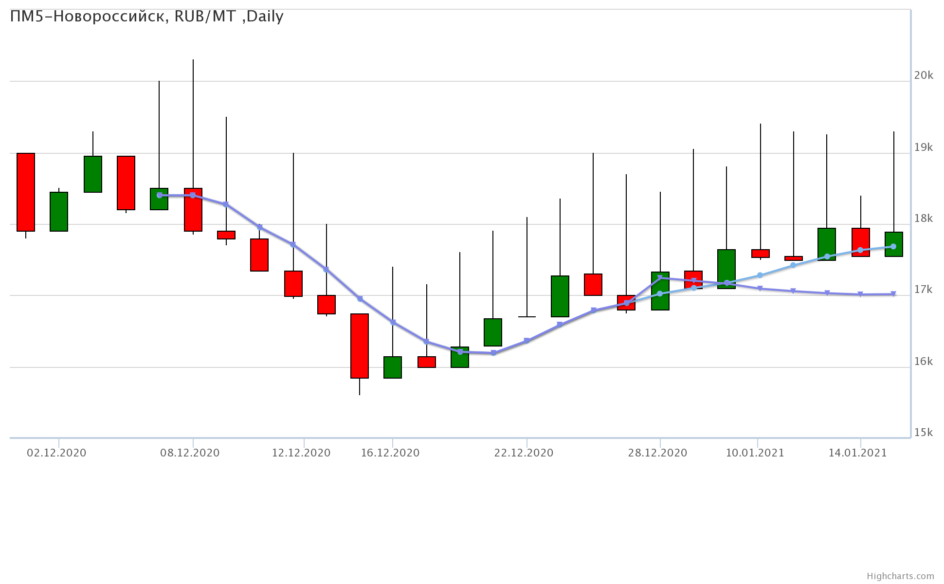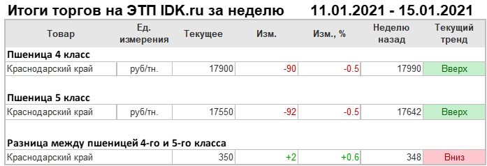 Цены на пшеницу 5-го класса, базис поставки Краснодарский край, за неделю упали на 92 рублей до 17550 рублей за тонну.
