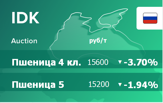 на пшеницу 4-го класса -15600 рублей за тонну, без НДС.