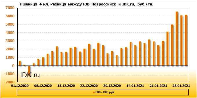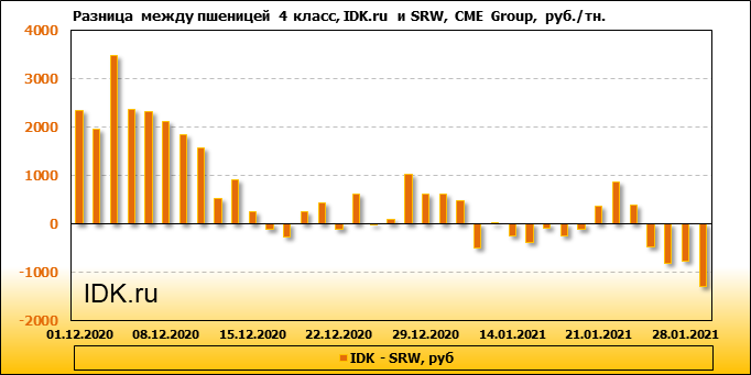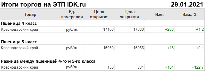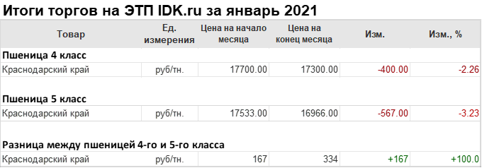 Разница в цене на торгах между 4 и 5 классами пшеницы