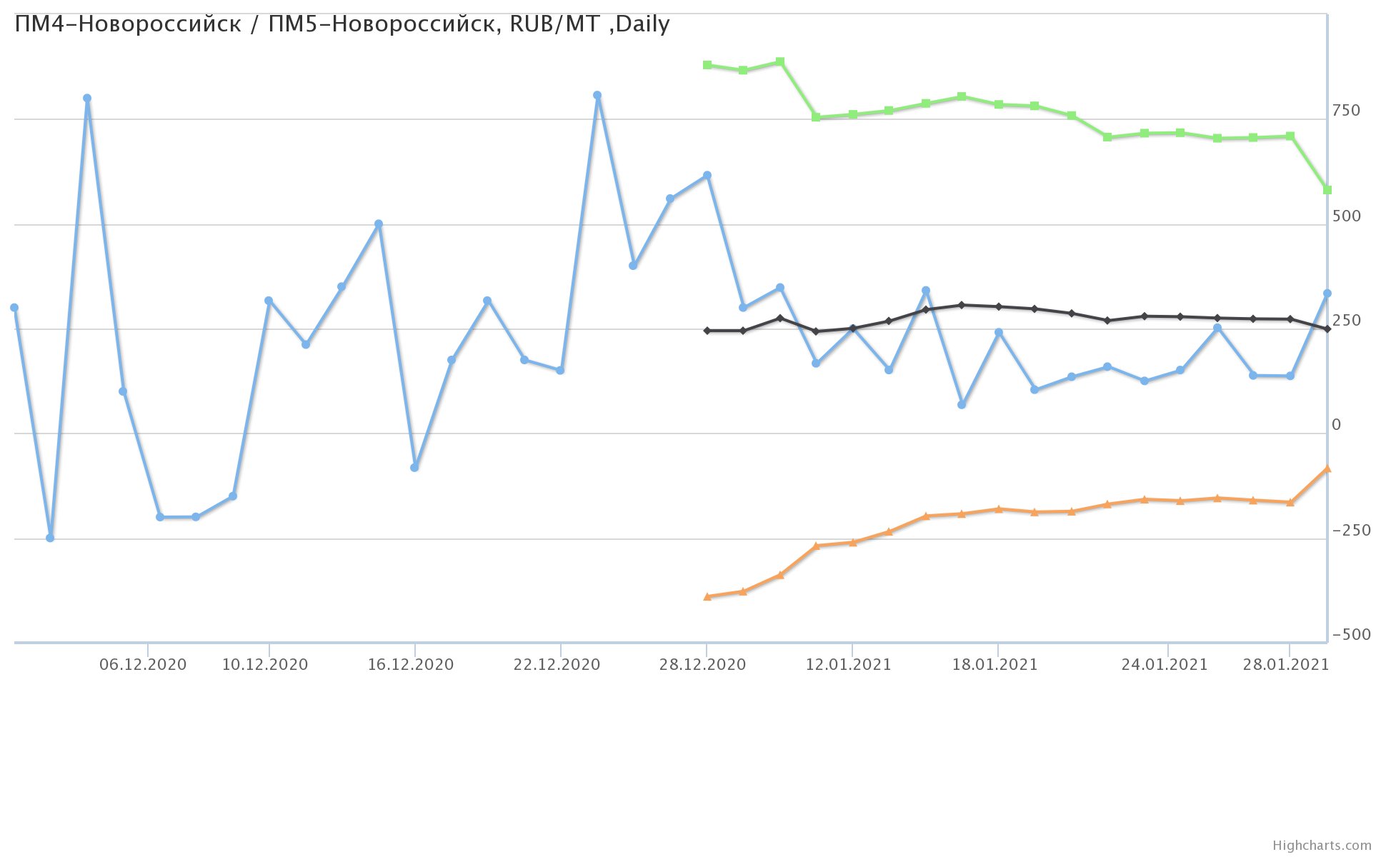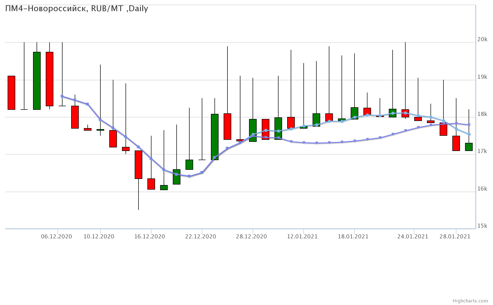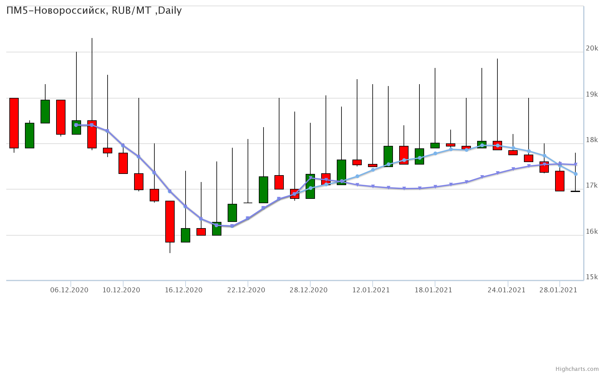 В конце января цены на торговой площадке перешли к снижению. Влияние на торги оказывает ввод экспортной пошлины правительством России.