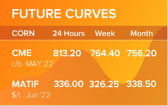 Цены на зерно в понедельник продолжили расти, так как настроения остаются бычьими из-за внутренних и внешних факторов. Цены на кукурузу превысили 8 долларов за бушель благодаря текущим обстоятельствам как в США, так и за рубежом. Внутри страны опасения заключаются в том, что высокие цены на удобрения и возможные задержки с посевом приведут к тому, что больше акров будет занято соей. На мировом рынке военный конфликт в Украине продолжает сильно ограничивать экспортные возможности страны. Майские фьючерсы выросли на 22 цента до 8,1225 доллара, а июльские — на 22,25 цента до 8,06 доллара.