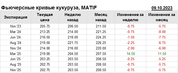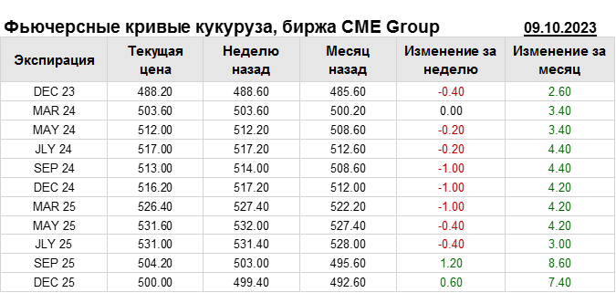 Кукуруза. Фьючерсные кривые на 9 октября 2023