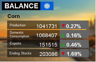 Баланс по кукурузе. Данные по Миру на 09.02.2018