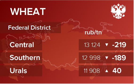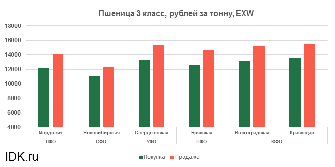 За прошедшую неделю с 27.04.2020 по 01.05.2020 средняя цена на пшеницу 3-го класса, согласно выставленным заявкам трейдеров, выросла по всем округам на 160 рублей. Средняя цена составляет 13410 рублей за тонну.