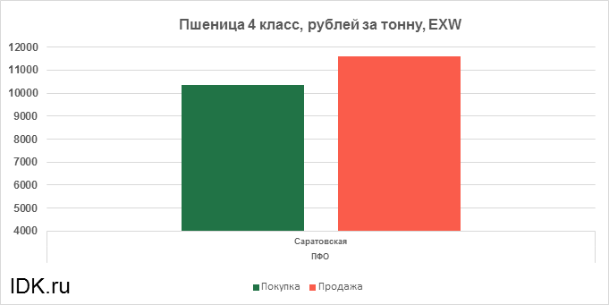 За прошедшую неделю с 27.04.2020 по 01.05.2020 средняя цена на пшеницу 4-го класса, согласно выставленным заявкам трейдеров, упала по всем округам на 320 рублей. Средняя цена составляет 10970 рублей за тонну.