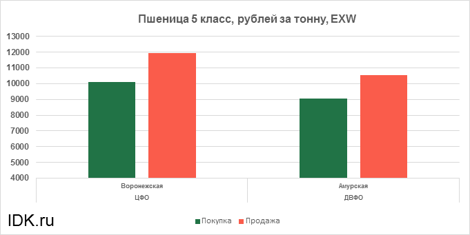 За прошедшую неделю с 27.04.2020 по 01.05.2020 средняя цена на пшеницу 5-го класса, согласно выставленным заявкам трейдеров, упала по всем округам на 65 рублей. Средняя цена составляет 11020 рублей за тонну.