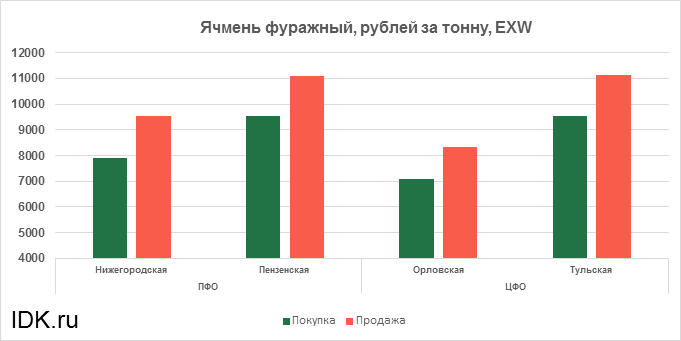 За прошедшую неделю с 27.04.2020 по 01.05.2020 средняя цена на фуражный ячмень, согласно выставленным заявкам трейдеров, выросла по всем округам на 667 рублей. Средняя цена составляет 9495 рублей за тонну.