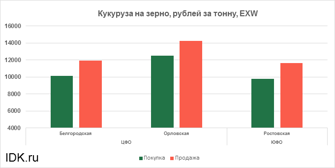 За прошедшую неделю с 27.04.2020 по 01.05.2020 средняя цена кукурузы на зерно, согласно выставленным заявкам трейдеров, выросла по всем округам на 891 рубль. Средняя цена составляет 11754 рубля за тонну.