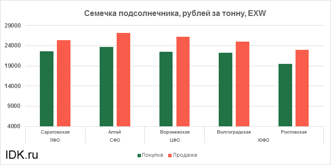 За прошедшую неделю с 27.04.2020 по 01.05.2020 средняя цена семечки подсолнечника, согласно выставленным заявкам трейдеров, выросла по всем округам на 709 рублей. Средняя цена составляет 23932 рубля за тонну.