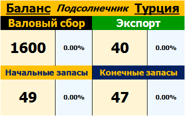 Подсолнечник. Турция. Баланс на 09.11.2017