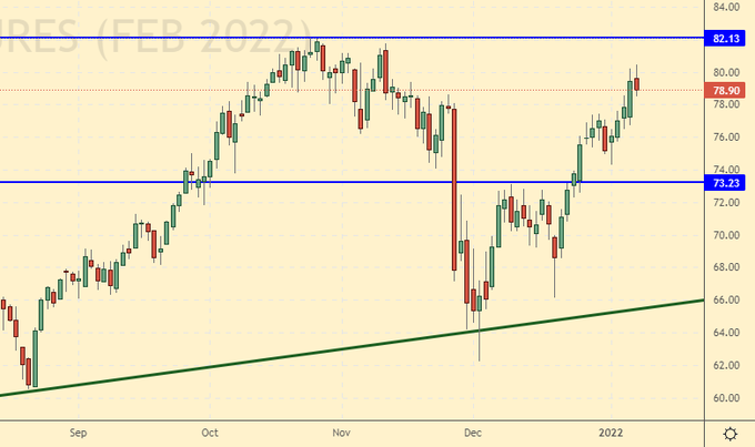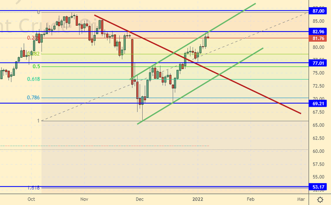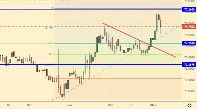 Already on Monday, we are expected to hold talks between Russia and the United States in Geneva, then, on the 12th, Russia-NATO talks are to take place. If the communication between the parties is restless and in places deranged, then we will see another wave of sales from the beginning of this year in the dollar / ruble pair, despite high oil prices.