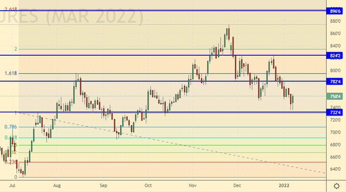 Growth scenario: March futures, the expiration date is March 14. We wanted to rollback to 730.0, and we got it. Here you can buy with the target at 894.0.
