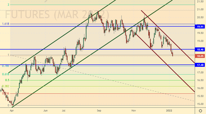 Growth scenario: March futures, the expiration date is February 28. We consider purchases from 17.50 as optimal.