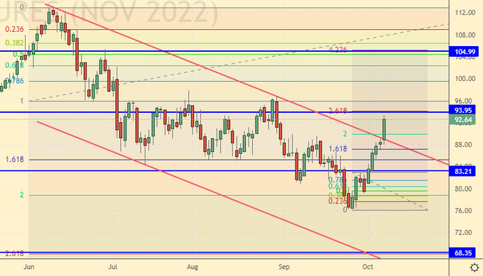 Representatives of OPEC + on the 5th reduced oil production by 2 million barrels. This act had a strong effect on the oil market, and on Friday it came close to 100.00 for Brent. It is impossible to exclude further growth of quotations. We can approach the level of 110.00 within the current impulse.