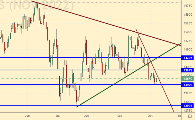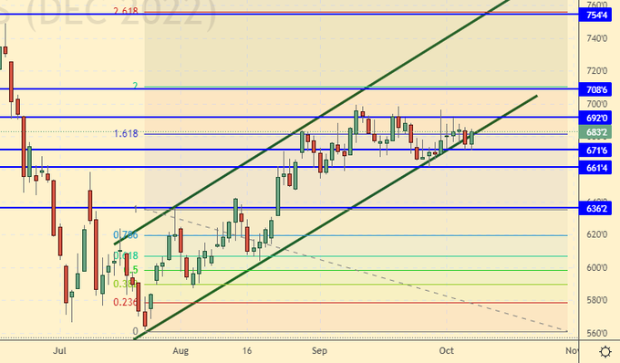 Growth scenario: we are considering the November futures, the expiration date is November 14th. Soy continues to fall, which is natural in the current conditions: there is a lot of it. We don’t buy. Looking forward to lower levels.