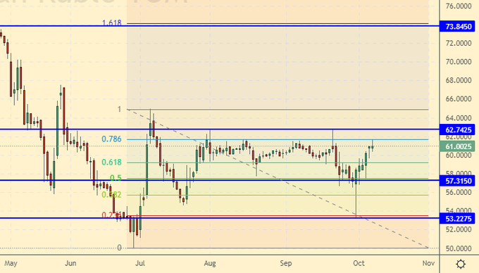 Fall scenario: we will not sell. Traders who bet on the weakening of the dollar were forced to flee. In the current macroeconomic situation, the market is more likely to rise to 74.00 than to try to go below 50.00.