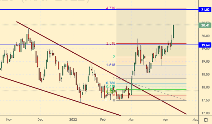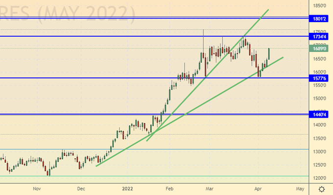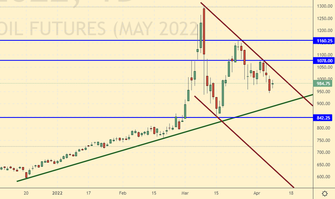 In France, a battle unfolded in the presidential election. Most likely, the current President Macron and his far-right opponent Marine Le Pen will make it to the second round, the gap between them is only one percent. If the lady wins, then France can expect to leave NATO, revise the conditions for emigration to the country and turn to face the deep French people. Then there will still be a chance that ten years later, just like thirty years ago, a white-nosed garcon will bring a fresh baguette with goose pate and a glass of white wine to a miniature table for a poor Russian tourist. Grain markets are in no hurry to fall.