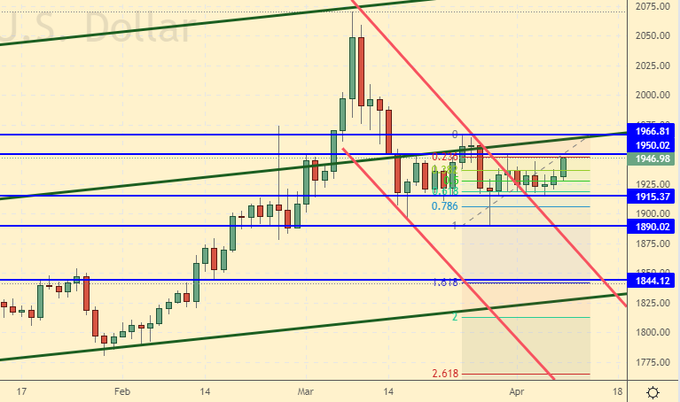 Growth scenario: despite the growth of the dollar index, gold does not fall. It is possible that good demand is provided by China. If the market rises above 1970, we will buy.