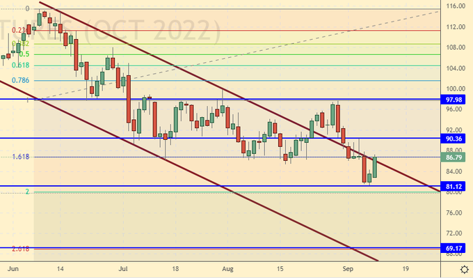 Growth scenario: consider the September futures, the expiration date is September 30th. We will continue to stop shopping. A good long entry needs a fall towards 85.00.