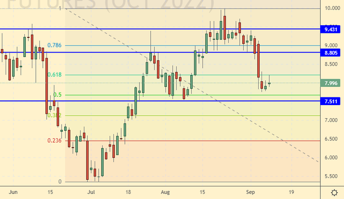 Fall scenario: the chances for a continuation of the downfall remain good. The strong positions of grain are embarrassing, but they may be shaken as early as Monday. We continue to keep the shorts.