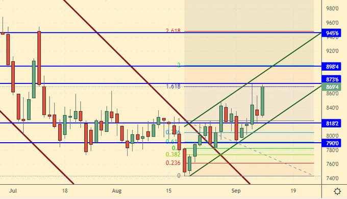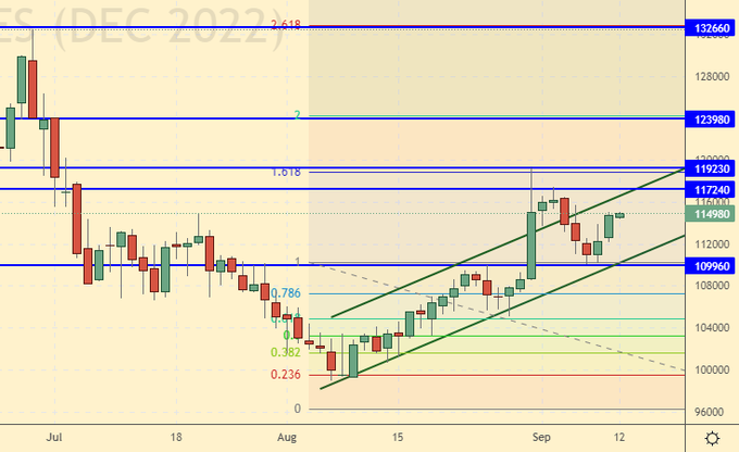 Growth scenario: consider the October futures, the expiration date is October 12. Let’s buy from the current levels. There is little chance of continued growth.