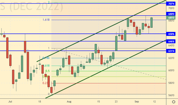 Sale: no. Who is in position from 680.0, keep the stop at 690.0. Target: 580.0 cents per bushel.
