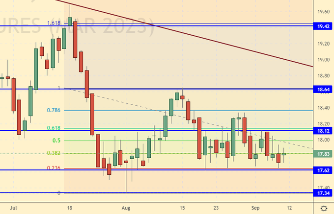 Growth scenario: we consider the March futures, the expiration date is February 28. Support on 17.60 remains strong. We will keep long. Those who wish can buy at current levels.