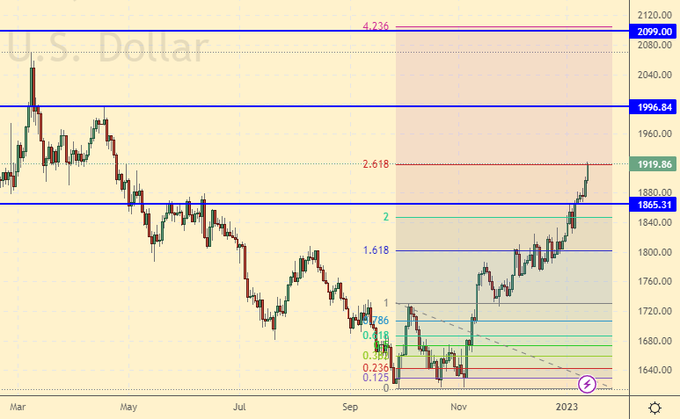 Growth scenario: 1910 target reached. Those who wish can take profits, and we are waiting for a “surprise” from the market and a rollback move to 2100, then to 2400.