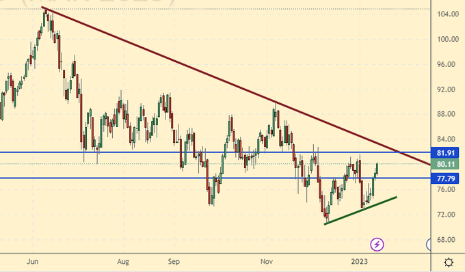 Fall scenario: current levels are interesting for short entry. You can sell here, in case the market falls below 79.00, it makes sense to increase the position.