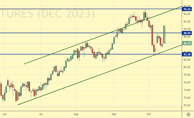 The fall in wheat prices, which occurred in September due to the abundance of grain in Russia and Argentina, appears to be over. Against the background of the conflict in the Middle East, the demand for grain from importers will only increase. Egypt, Turkey, Saudi Arabia, Lebanon, Pakistan, perhaps India — everyone will increase purchases as millions of refugees have already appeared on the horizon and they need to be fed with something.